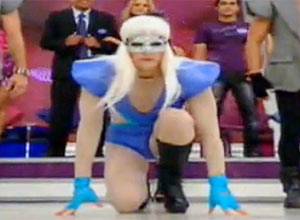 No sábado passado, Faro colocou uma peruca loira, vestiu meia calça e um maiô azul para dublar a música "Poker Face", da cantora americana.